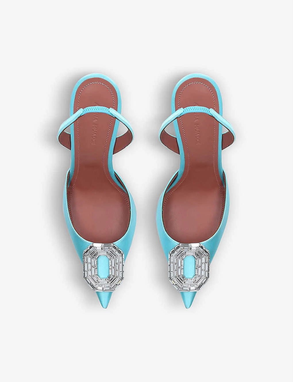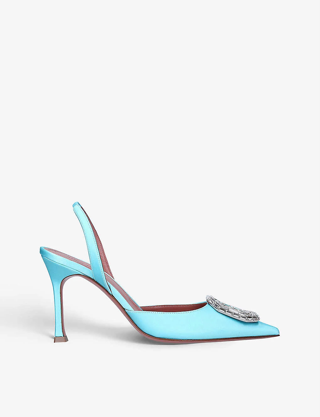 - Amina Muaddi satin and leather slingback pumps
