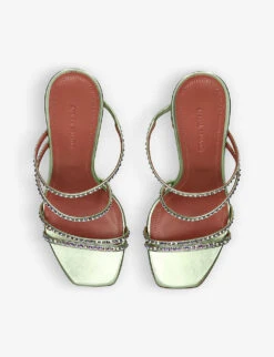 - Closed pointed toe, crystal embellished, slingback ankle strap, kitten heel