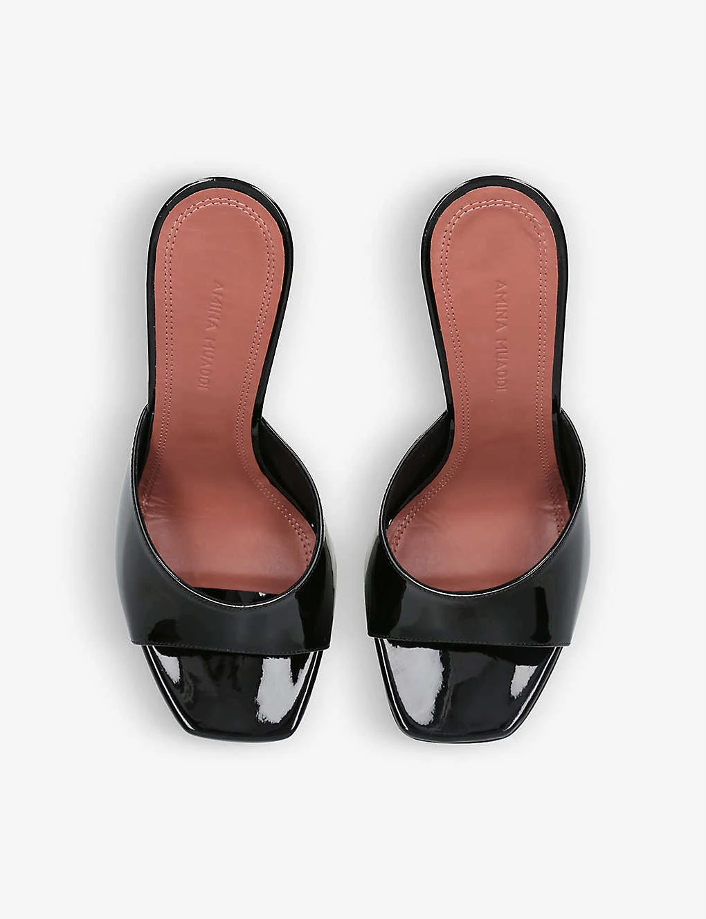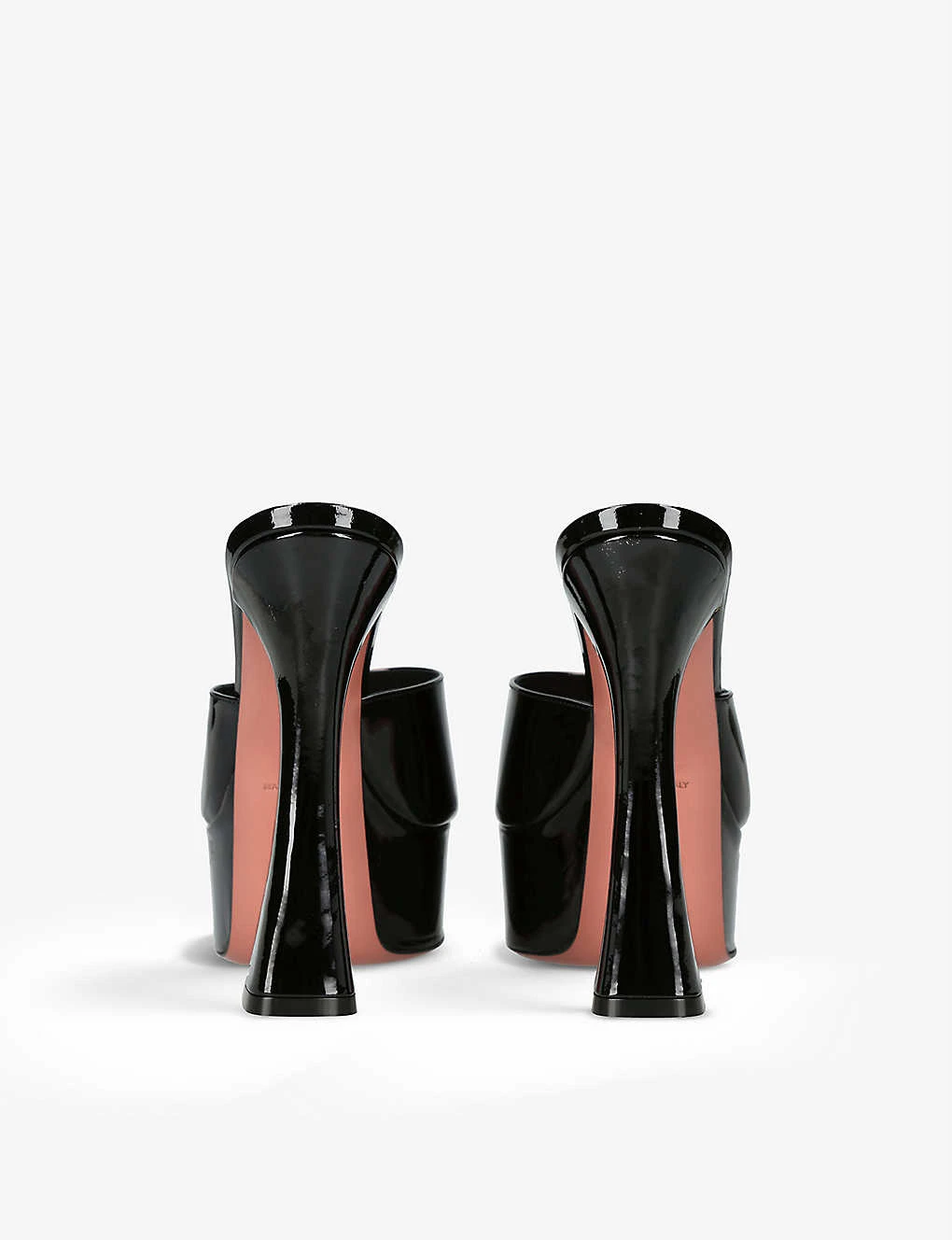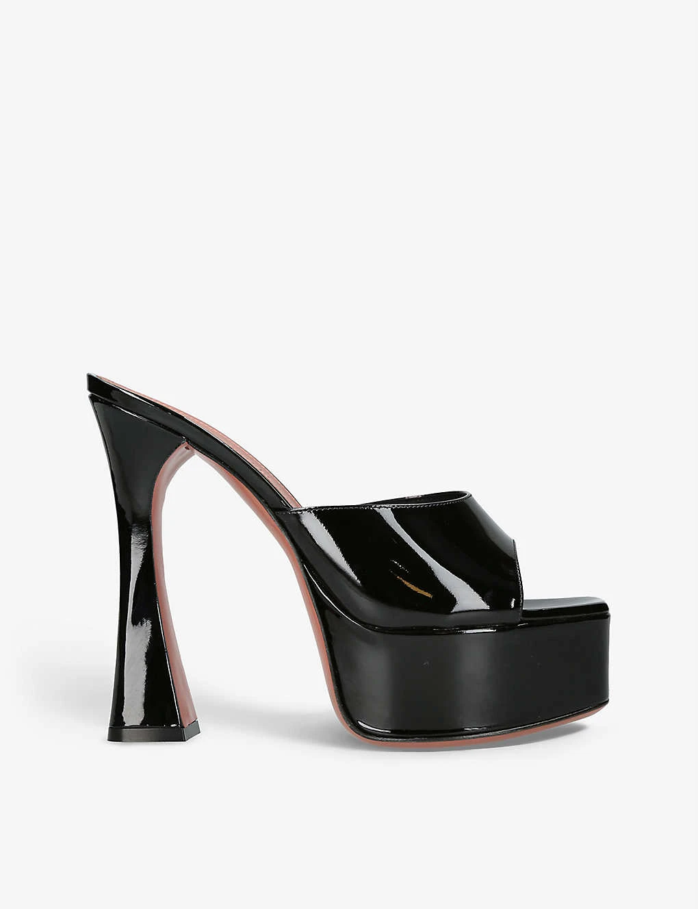 - Amina Muaddi patent-leather heeled platform sandals