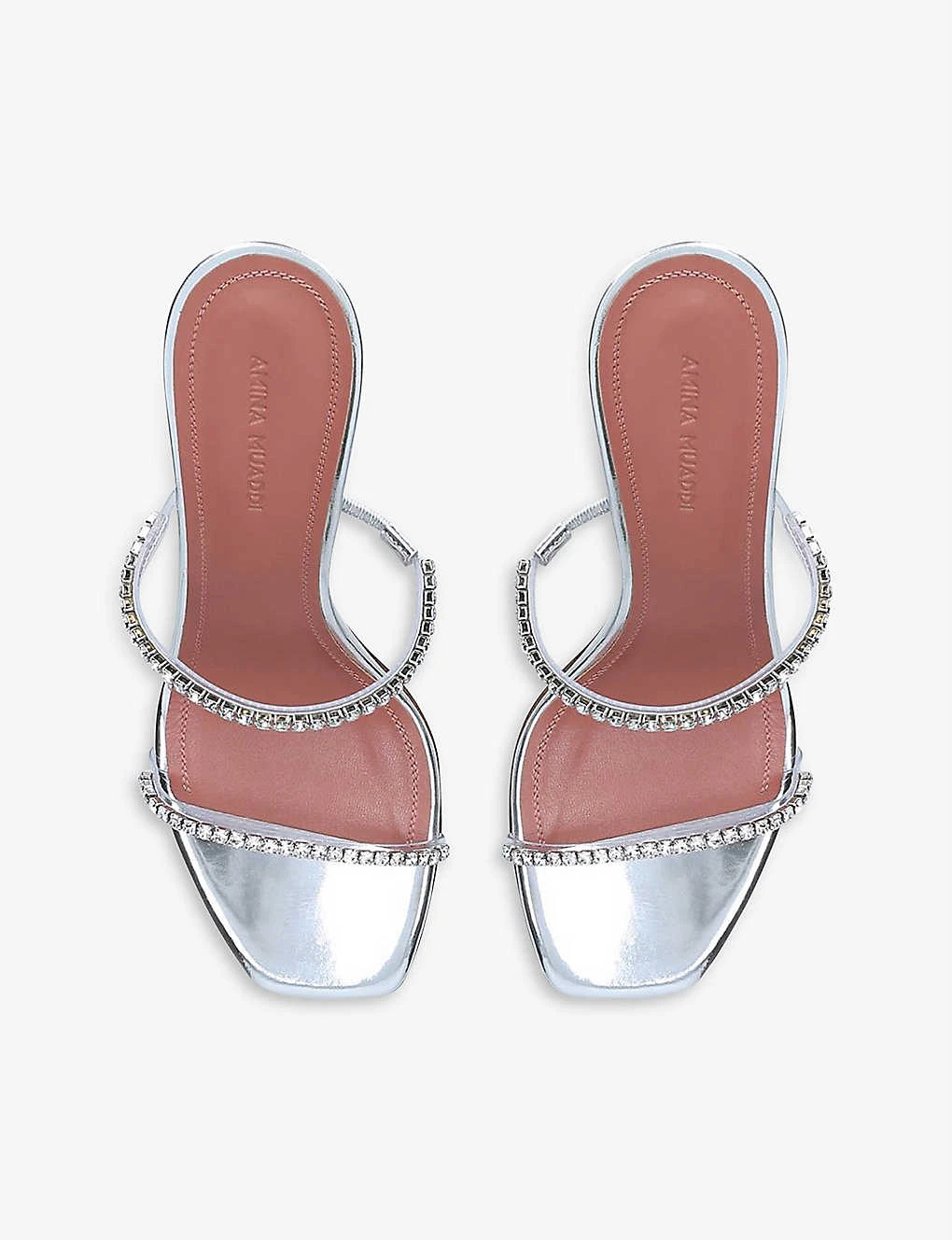 Amina Muaddi Gilda Crystal-embellished Leather Heeled Mules