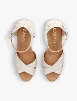 - Almond toe, peep toe, cut-outs at sides, elasticated ankle strap