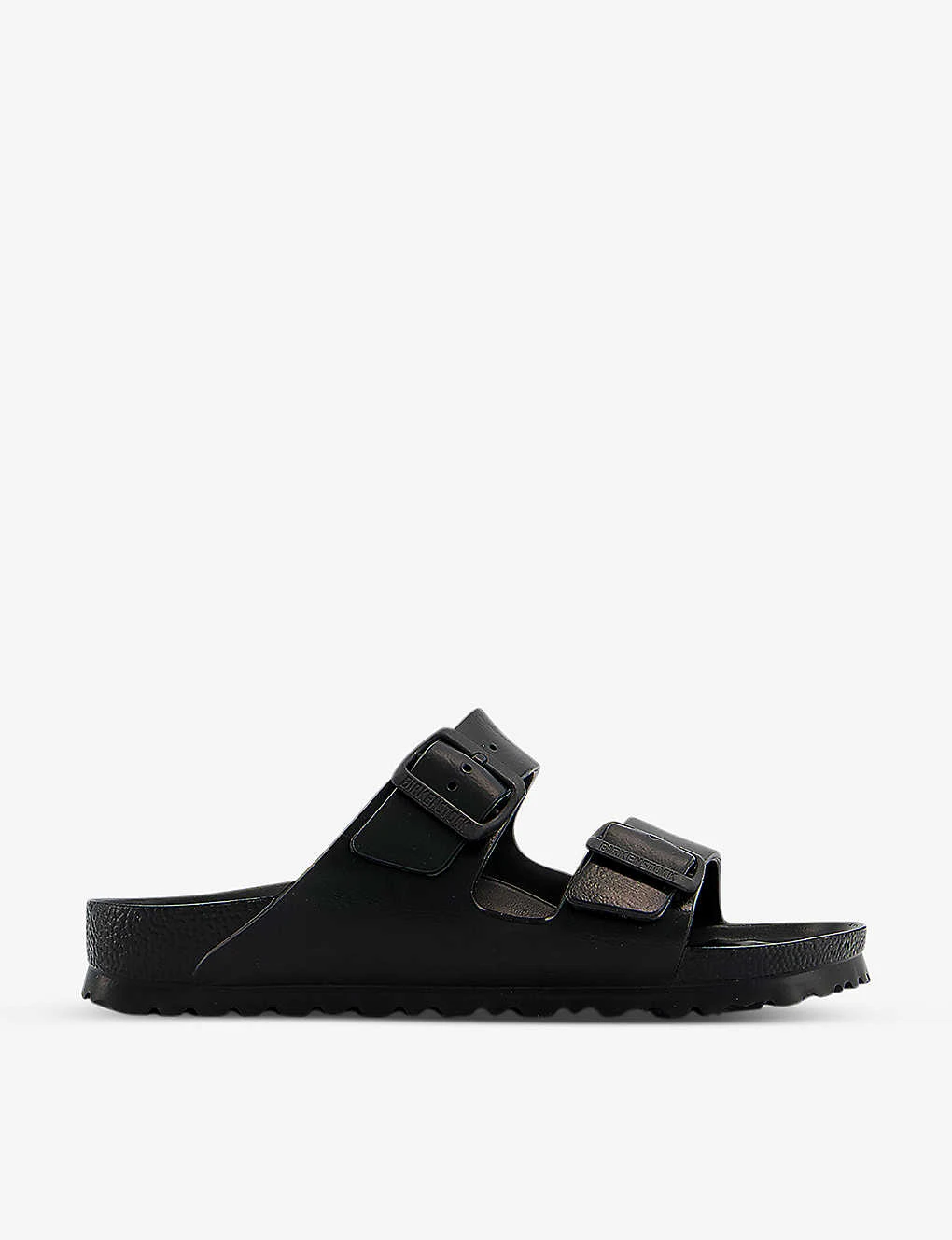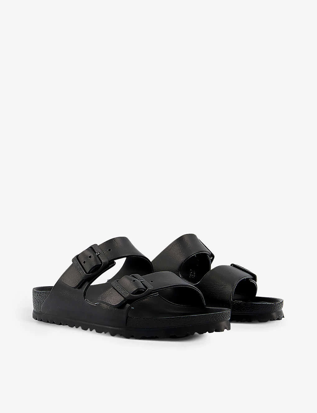 Round open toe, two straps, branded hardware, signature moulded EVA sole