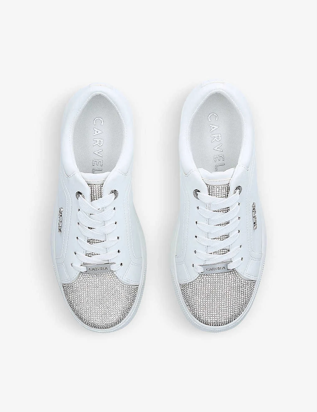 Carvela Soar Jewel Crystal-embellished Faux-leather Low-top Trainers