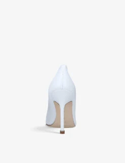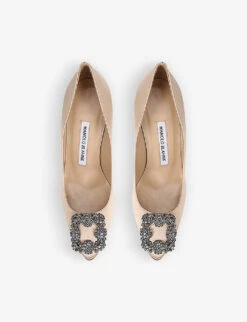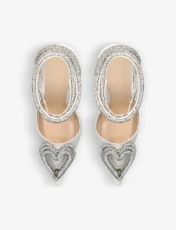 - Pointed toe, crystal-embellished bow, wraparound straps, stiletto heel