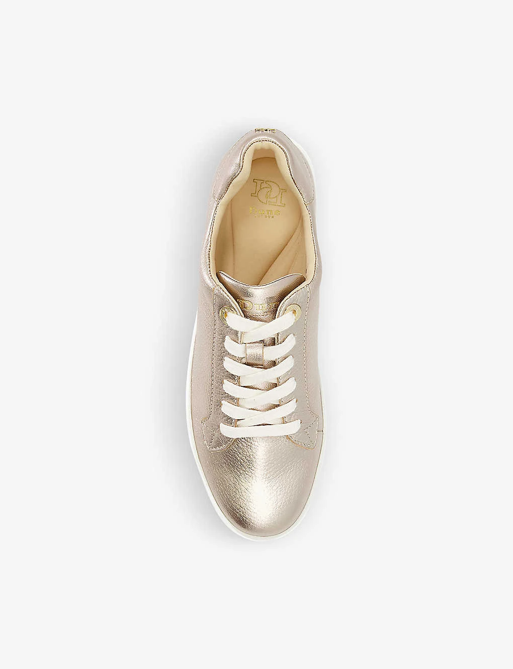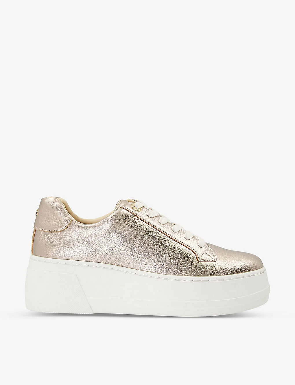 - Round toe, gold-tone hardware eyelets, logo-embossed tongue, gold-tone hardware on heel trims, all-over tonal stitching, flatform shape sole, padded ankle cuff