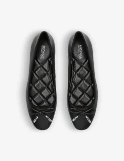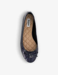 - Closed almond toe, flat design, stomper strap at front, all-over tonal stitching, padded footbed
