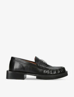 Ganni Rhinestone-embellished Block-heel Leather Loafers