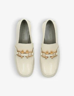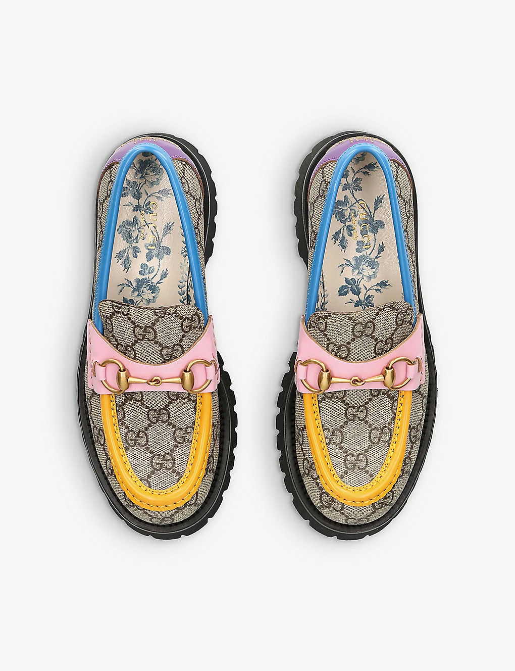 - Printed bee on back, horsebit detail, lug sole, leather trim