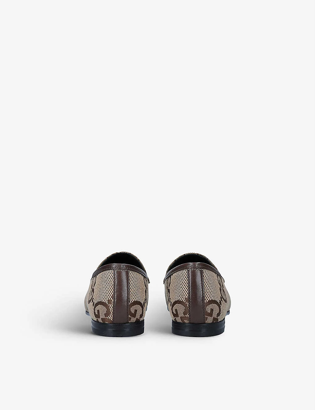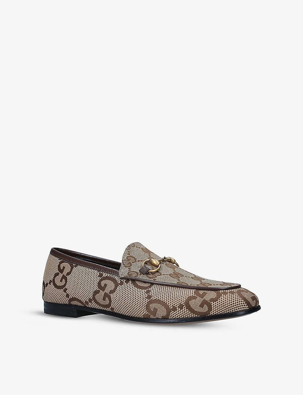 Almond toe, horsebit embellishment at front, all-over monogram print