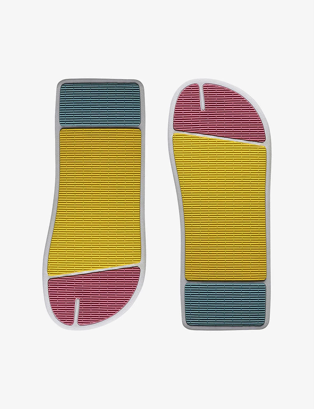 - Open toe, almond toe, contrast straps, branded straps, brand embossed at heel, textured heel, square heel