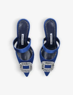 - Pointed toe, Swarovski crystal-embellished buckle, covered heel