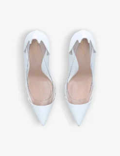 Gianvito Rossi leather courts Slip on Pointed toe, stiletto heel, contrast transparent panels Leather and synthetic upper, leather lining, leather sole Heel height: 4″”