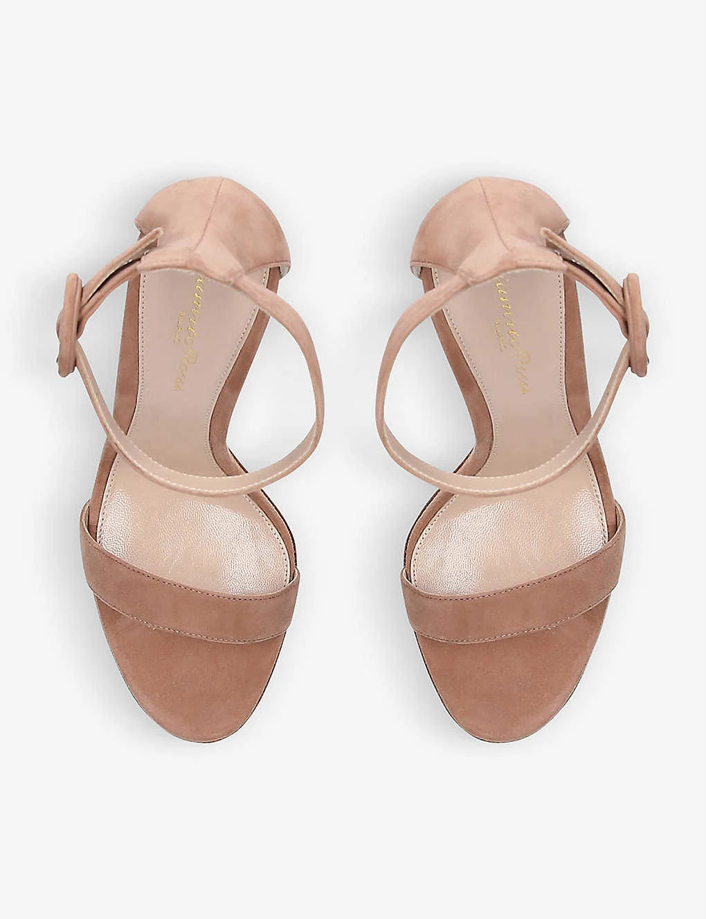 - Open toe, round toe, ankle strap, stiletto heel, branded insole