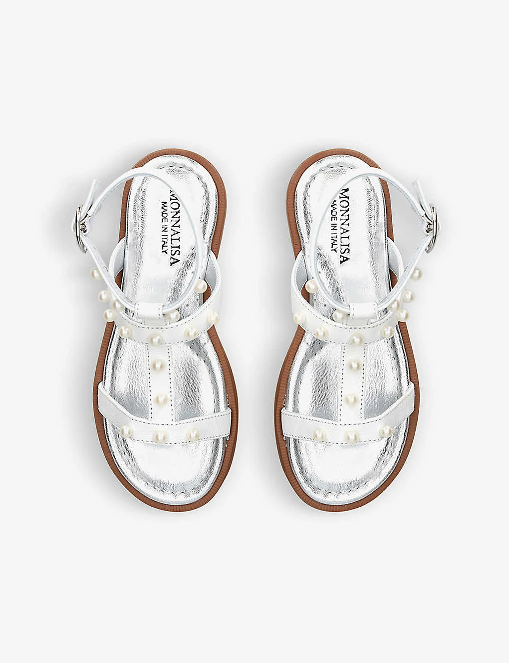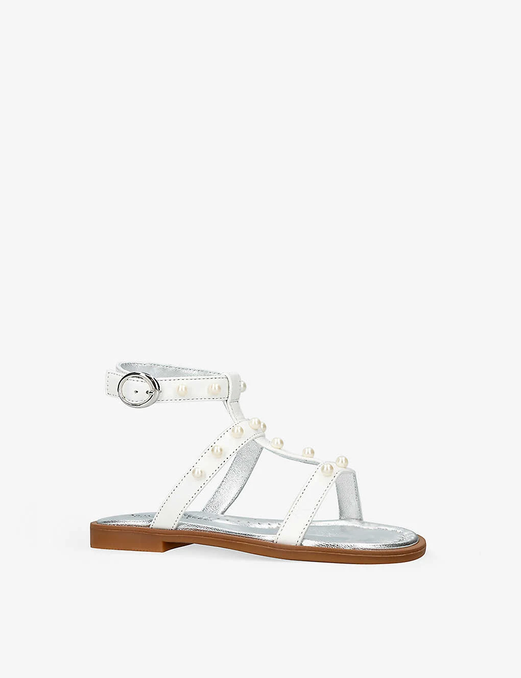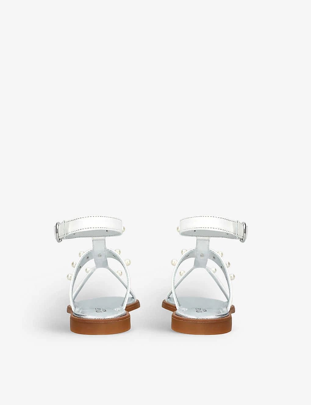 - Round toe, T-bar caged design, stud embellished, branded insole, silver-toned hardware