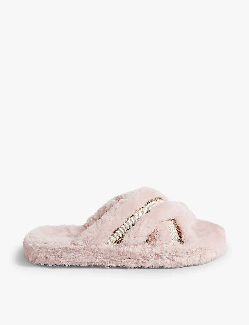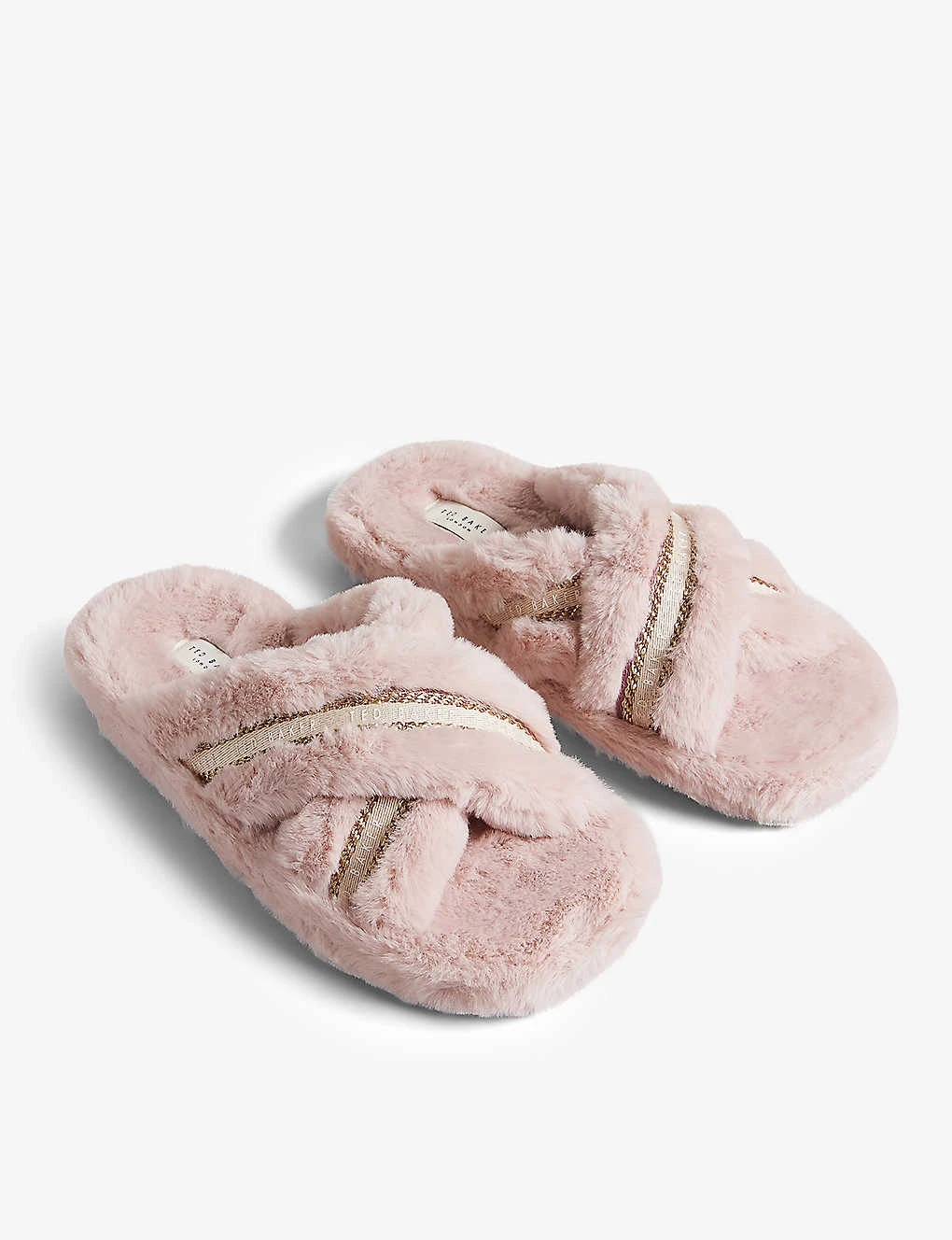 Ted Baker Topply Cross-over Faux-fur Slippers