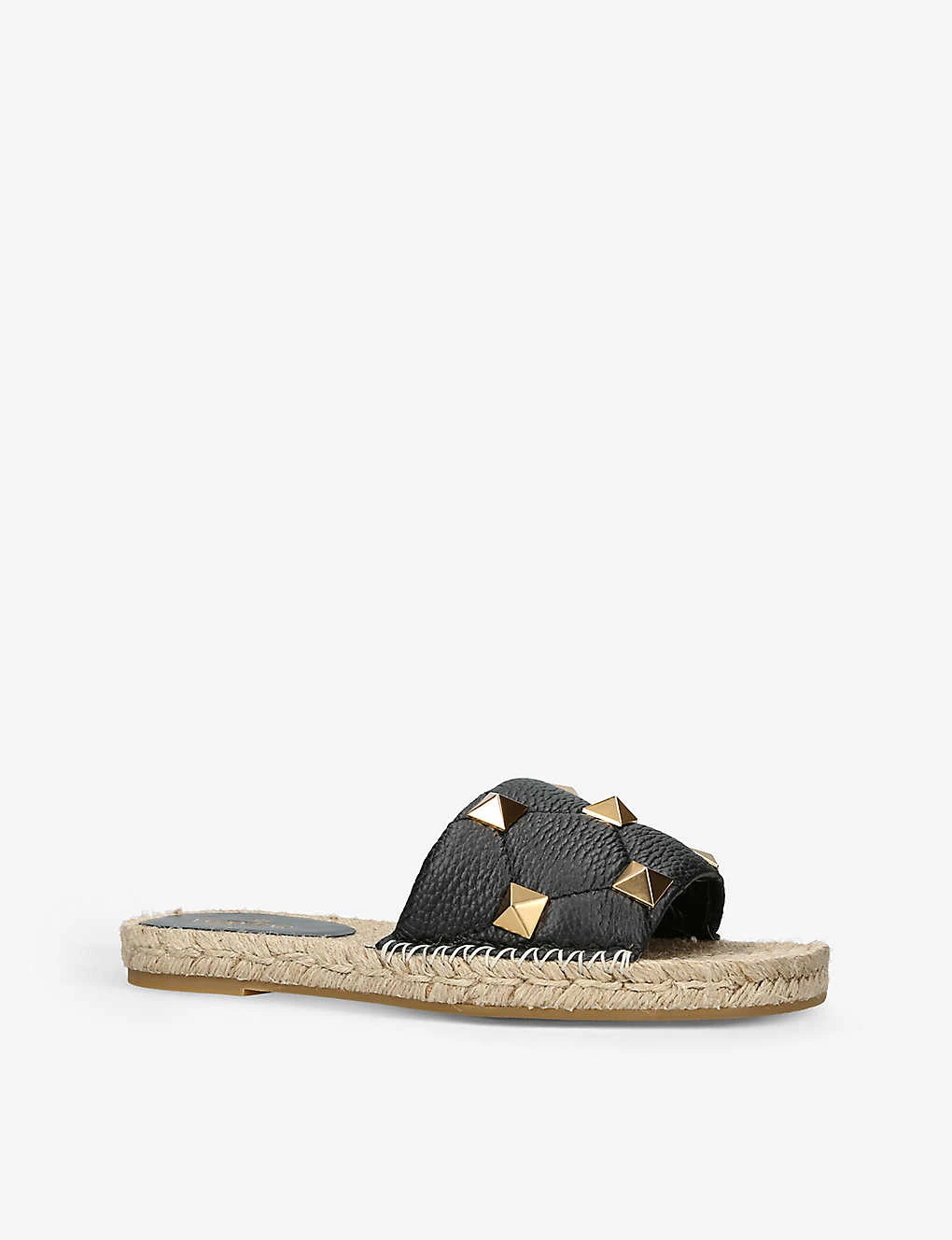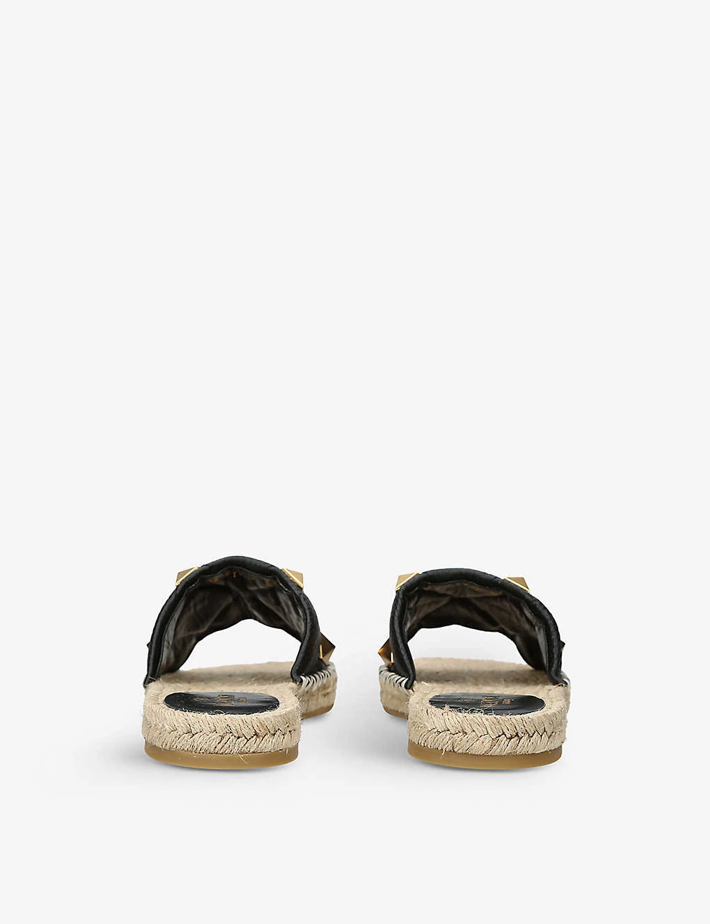 - Open toe, Rockstud embellishment, gold-tone hardware