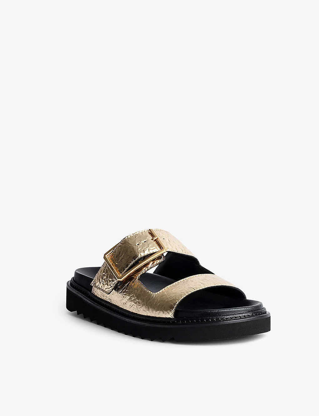 Zadig & Voltaire Double-strap Metallic-finish Leather Sandals